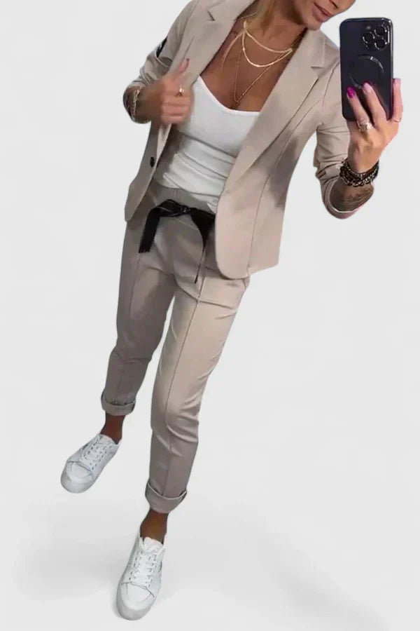 - Design fluid al blazerului: Un blazer frumos structurat care îți îmbunătățește silueta, făcându-te să arăți elegantă fără efort.