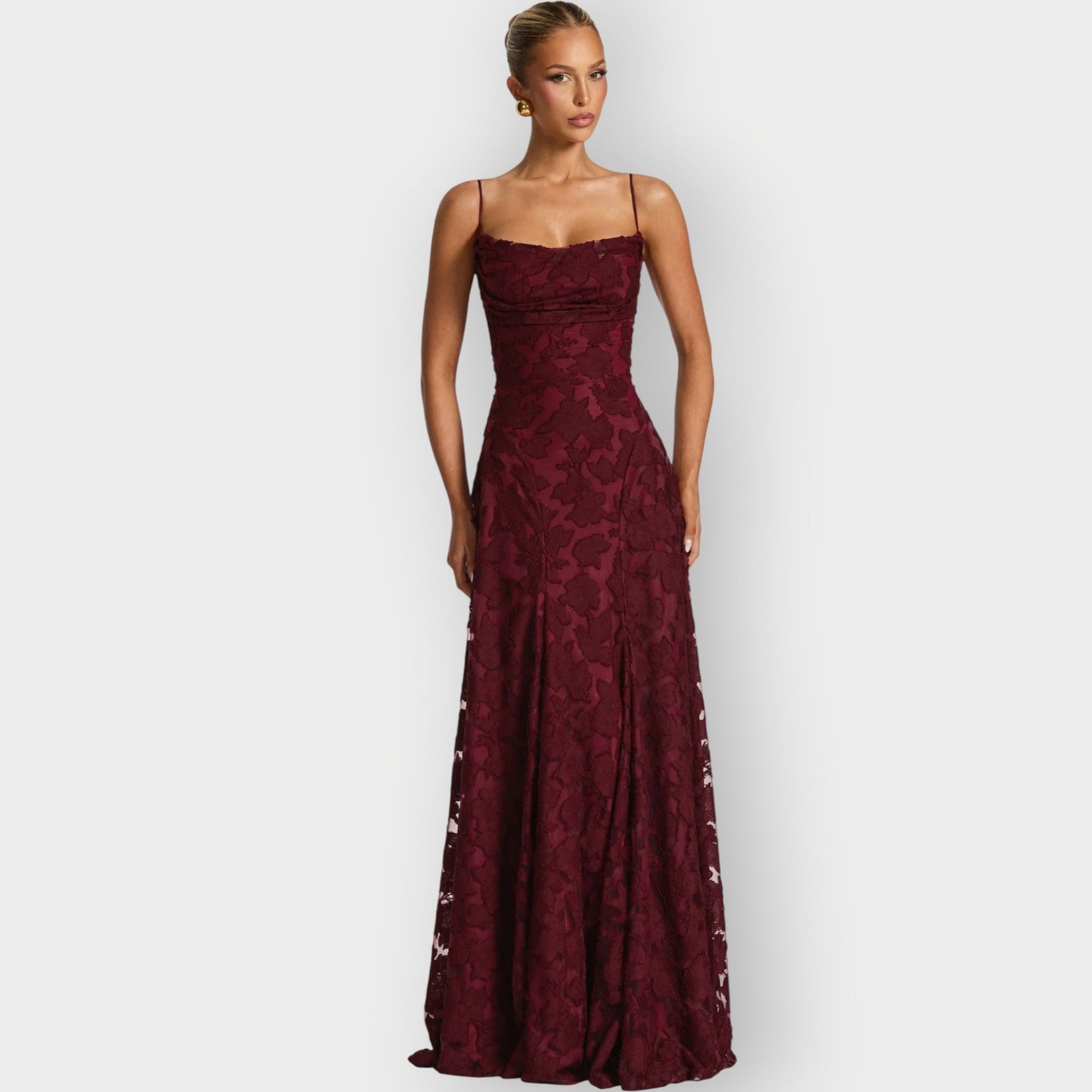 - Detalii florale delicate care sporesc romantismul și atractivitatea vizuală a rochiei.